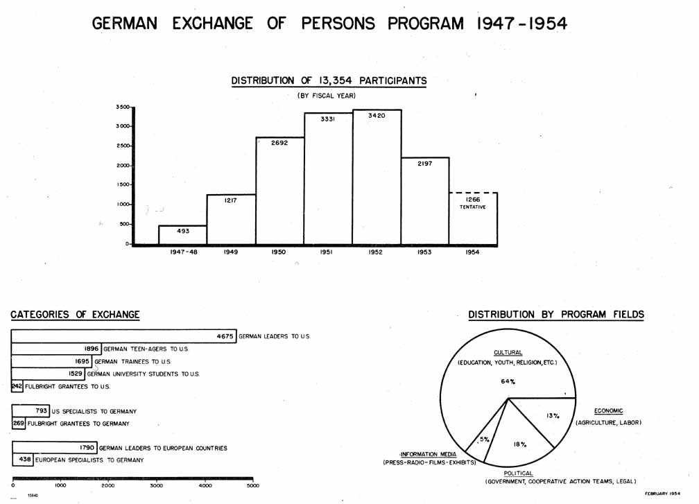 In the history of educational, cultural, and intellectual relations between the United States and other nations of the world, few events have been more dramatic or more significant than the educational and cultural program between the United States and Germany in the immediate post-World War II decade. During that period, more than 12,000 Germans and 2,000 Americans participated in what was the largest educational and cultural exchange program with another country that has ever been undertaken by the U.S. Government.