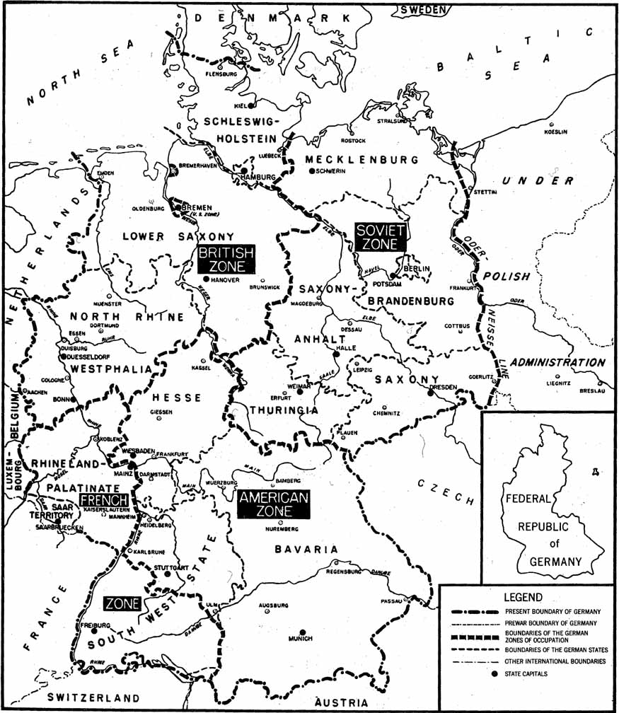 A word about the sources used: To a large extent they consisted of official documents of the Office of Military Government U.S. (OMGUS), the Office of the U.S. High Commissioner for Germany (HICOG), the Department of State, and the War Department (later the Department of the Army). Most of them were found in the files of the Foreign Affairs Document and Reference Center of the Department of State; at the Washington National Records Center, Suitland, Maryland; in the files of the Bureau of Educational and Cultural Affairs; in the National Archives; and in published reports, collections, studies, and biographies. Regrettably, the governmental files proved to be incomplete as a number of critical documents have been destroyed. The documents that could be located contained essentially records of policy and procedures, tables of organization, budgets, opinion surveys, and official reports. They included only to a limited extent samples of personal accounts submitted by German and American participants in the program reflecting on their experience and on the results of their efforts.