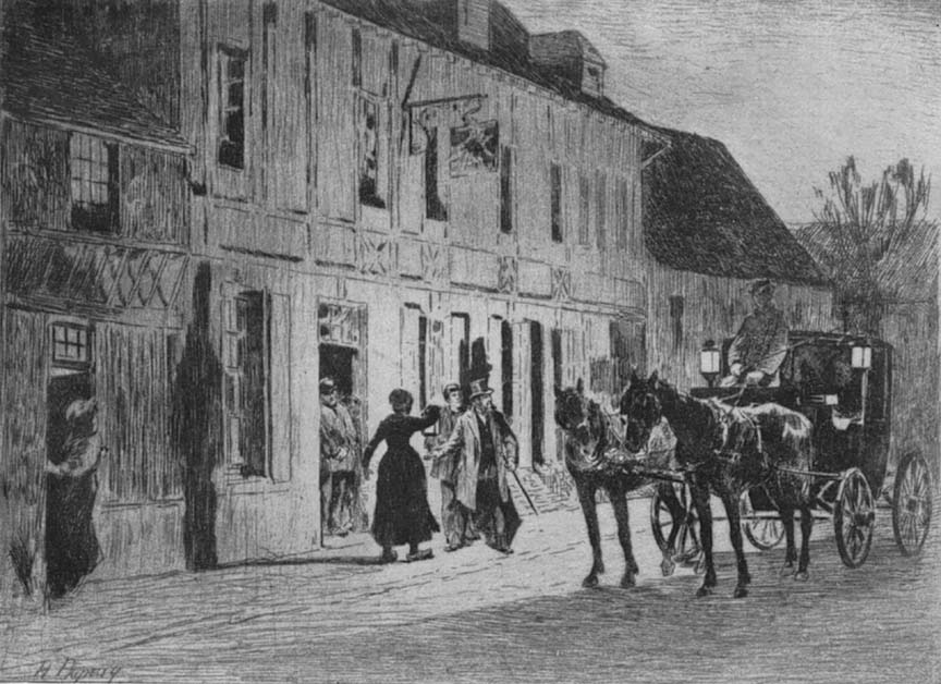 The man then went with me to the carriage-house; the vehicle that I had seen was pulled out, a pair of fairly good horses attached to it, and the driver was told to go with me to the place on the Paris road where we had stopped, and to take our party on as far as Pacy.