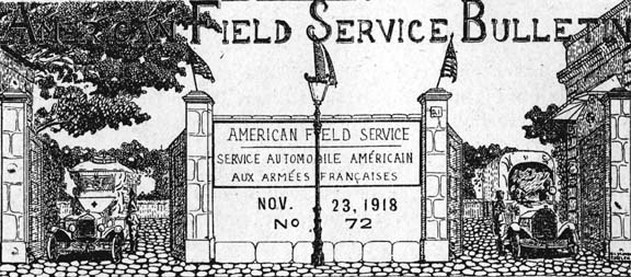 During the Allied advance on the Western front since September 25th the ambulance sections have been most active and many of the former Field Service sections have performed especially dangerous and arduous work under the most difficult conditions. Much of the evacuation was through devastated country where the roads were in truly terrible condition, full of shell holes and mine holes and crowded beyond belief with convoys of every description and with troops ---at times it required from one to two hours to go a distance of five kilometres.