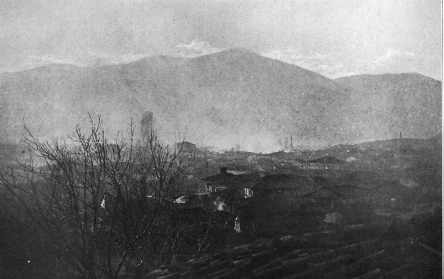 ALONG in the afternoon the intermittent bombardment of Monastir, which had been going on all the morning, suddenly increased in volume, until at four o'clock the noise of the bursting shells became a continual rumble, and tongues of flame mingled with the smoke and dust clouds which continuously shot up over the house-tops of the city.