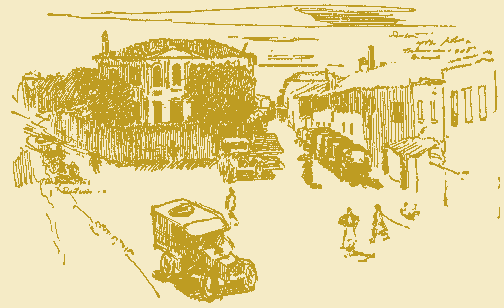 'WE found Florina one of the most interesting towns in the Balkans. Long under the rule of the Turk, it possessed a distinctly Oriental aspect which gave it charm. It nestled at the foot of some high hills which had been the scene of heavy fighting in the dispute for its possession. The town itself had suffered little, if any, in the fighting. Its long main street followed a valley, turning and twisting. Booths and bazaars lined the thoroughfare and in places vines had been trained to cover it. There were innumerable tiny Turkish cafés, yogart shops, little shops where beaten copperware was hammered out, other booths where old men worked on wooden pack-saddles for burros. There were artisans in silver and vendors of goat's-wool rugs. The streets were always alive with "the passing show," for the normal population of fifteen thousand souls had been greatly augmented by the influx of refugees from Monastir. There was an air of unreality about the place, an indefinable theatricalism which gave one the sense of being part of a play, a character, and of expecting, on rounding a corner, to see an audience and then to hear the playing of the orchestra.