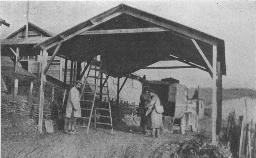 Bed was a welcome place after such a turn on duty. In fact, for two weeks we thought of nothing but eating, sleeping, and driving. Any great amount of washing, either of the men or the cars, went by the board. The number of wounded carried cannot be told at this writing, but suffice it to say that in two weeks the Section covered more than 34,000 kilometres over abominable roads. The amount of work, coupled with the fact that we had low-spring hangers and were constantly banging flat on the axles, caused crystallization of all the axles so that most of them soon broke as a result, which neither lightened our labor nor our spirits.