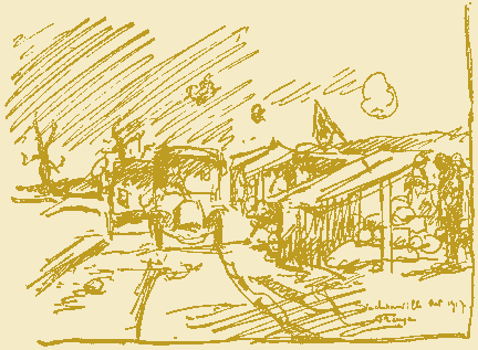 On June 18 we moved to the Commercy sector, near Saint-Mihiel, with the 34th Division. We relieved a French ambulance section, which went to our old 63d Division. On August 1, we went to Sorcy, near Commercy. It was during the middle of August that we took a four-day convoy up to Amiens, and, with the 34th Division took over the lines at Lihons and Rosières-en-Santerre during the Somme-Aisne offensive. We followed the advance as far as Saint-Quentin. Then came repos for a week near Amiens. We worked at the H.O.E. at Hattencourt this week. A week later, in the first part of October, we moved up to Saint-Quentin for the continuation of the Somme-Oise offensive. We followed this as far as Guise, where we were when the Armistice was declared. The Division left the lines, and went under orders to Paris, and we followed the march, via Mont d'Origny, Breteuil, Beauvais, Dieudonné, Montlignon, and Clichy. On February 11 we were given orders to go to Base Camp, en route for home.