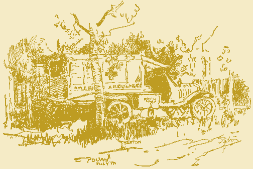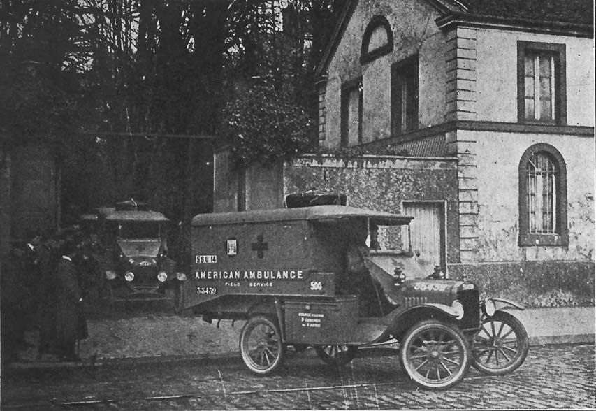 IT seems as though every time I go on duty new experiences increase my hatred of the hell of war. I cannot tell you all of them, the censor would object; but I do wish there was some way of telling you just how stoical to suffering the French poilu is. This is an impression that grows on me, with every wounded man that I carry. One has to become accustomed to so many heart-tearing scenes. The sight of blood-soaked bandages is frequent; but to see a young fellow with blood matted between a week's growth of whiskers and perhaps partly covered with mud; to see a pair of sky-blue eyes peering out from the paleness of intense suffering, and perhaps to hear him talk of home in his delirium, are things one can never become accustomed to. Strange as it may seem, I have never seen a wounded Frenchman who was unconscious no matter what the pain. I had one soldier whose leg had been broken below the knee by a piece of shell, and in some way his foot had got turned partly around. How the poor boy kept from groaning, I never knew. But what was more, he partly sat up in his stretcher and asked one of the carriers to turn the foot slowly back again. Cautiously and gently his comrade worked, until the suffering poilu said, "There," as he lay back on the pillowless stretcher. Your imagination can never paint the picture; you must see and experience the bravery of wounded France to realize her spirit. Boys of eighteen, men of forty, all give their lives and suffer for ideals that mean more to them than life. And then comes our part --- to get the wounded poilu quickly to the hospital and to the skilful surgeon, for time means life. And yet one must drive carefully, for every jar means agony.