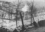 Rolled up then in a blanket to sleep; but half an hour later an urgent case arrived. He had his nose, half his cheeks, his upper lip and teeth, and half his chin shot away. I expect he died. While bringing him in, two "150's" exploded thirty yards to our left in the town, throwing earth and rocks and the smell of powder across the road. We were glad to get out alive. This was at 3 A.M.
