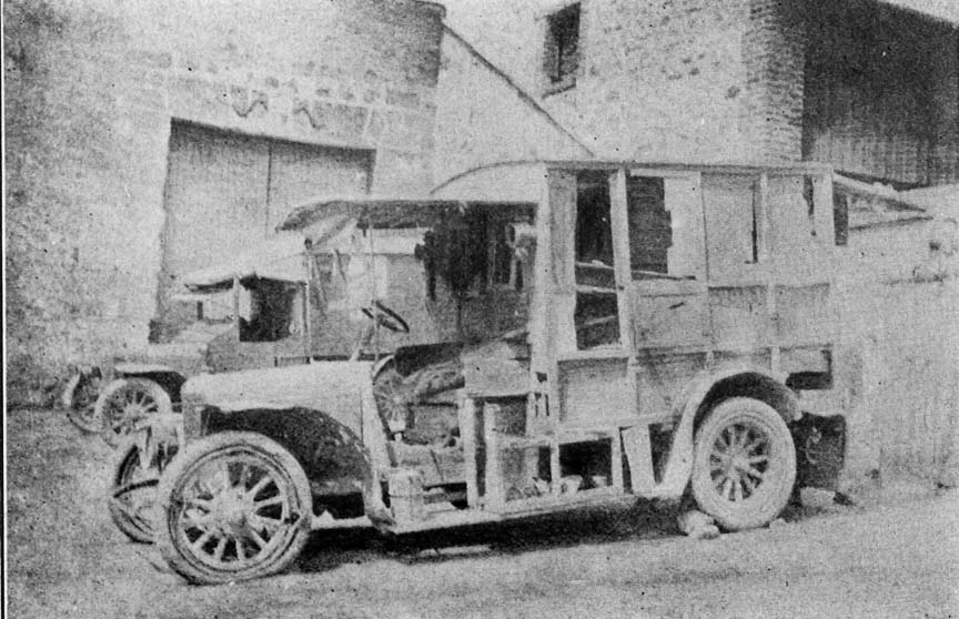 The movement of the troops being necessarily slow, we were forced to follow in easy stages, spending the nights in temporary cantonments such as old châteaux, and barns, or in the cars, which we parked along the road. Our convoys began to get better, and soon we could be counted on to reach camp in the evening with only the camion missing.