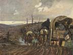 On the crossroads in most of the towns stood sentinels with a dull light; so with their help I found the first hospital and there left two of my wounded. Then I started off again, praying, for the sake of the man in the rear of the car, that I should be able to find the next place without delay. No sooner had I made the first turn out of the town than I met wagon trains coming in the opposite direction. Of all things to pass at night, these wagon trains are the worst, for the horses and mules walk all over the road, in spite of efforts to keep them on their own side. Especially when the train halts the horses turn sideways and the men sit beside the wagons.