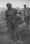 On the night of August 13, we had a call for four cars, and though I heard the enemy was using gas, I took the cars up, only to find the road so blockaded that I left them at the poste de secours and came back to telephone that we were unable to reach the farther postes, but would keep cars near the, blockade to bring back any blessés whom they could fetch to us there. In the meantime I found that Mueller had taken five cars out to meet a guide, sent by the Médecin Divisionnaire, who was to show him where the cars were needed. Mueller got as far as the blockade, where the gas was so thick that he took the five men and walked through to try to find the guide. But when he saw that the guide was not there to meet him, he waited until the gas cleared a little, then got about thirty-five blessés who had been injured by the gas at a near-by artillery poste, and brought them back. I would like to say a word commending Mueller for his work that night, for he had charge of those five new men and it was due to his efforts that they ever came out alive.