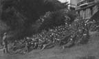 The other day he had been jollying some of the fellows about getting tired. They decided they would lead him a merry chase, so suggested that we go on a hike. He agreed, and the whole bunch set out up the hill in ranks at a furious pace ---taking long strides. We kept it up for about three miles, up through May-en-Multien and down toward the Crouy road and canal. The sergeant stuck right at the head of the affair, but, being forty-five or so and not used to such strenuous exercise, he was mopping his brow very frequently until we got in. He was a good sport and never said a word to stop the pace they were setting. The next day he lay on the grass beside the Grande Route and watched us drill for a short time, after which it was nearly all "repos," and we lay around in the grass beside the road most of the time during the morning and afternoon drill periods.