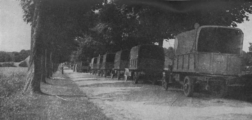 THE last brancard is shoved into its place A hasty cup of jus, a piece of bread, Trying to teach me French, a hard job that! But just before we turned the corner there, The country here is rolling, and the road And was n't I a fool to choose the rear? And verdant fields, and now a shaded road A military band blares as we turn That once those cars were blue? Well, now we're through.