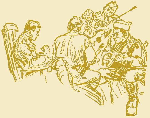 I went into the next room with the clerk. He sat at a desk and began checking off a lot of points without asking me anything, mumbling queries and responses automatically to himself, " Religion --Christian. Record --- Faithful, etc., etc."
