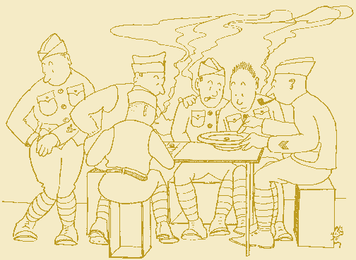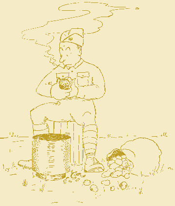 Washing-soda, soap, eggs, vegetables, dish-cloths, butter, fruit, grease, hors-d'uvre, cheese --- such are a few of the daily requirements, and it is necessary to reconcile the tastes and appetite of the men with the limited funds grudgingly doled out by the section commander, and pitilessly mangled by that bottomless sink of iniquity and waste, the cook!