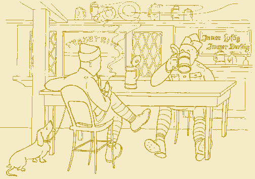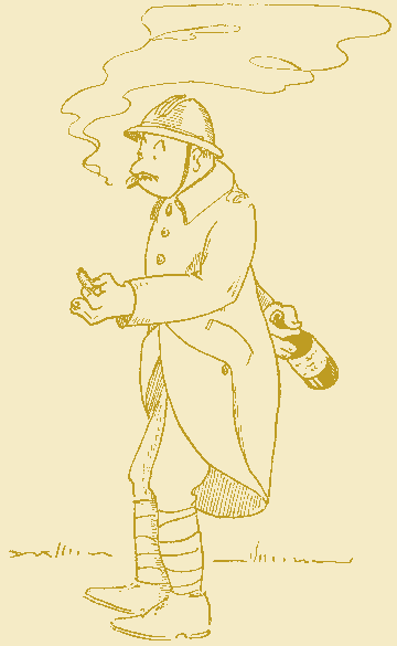 This complicates la vie considérablement. Wenn you have auf ein Wirtshaft gegangen, la Madame says, "Bonjour, Monsieur, was wollen sie?" and vous dites, "Guten Abend, Madame, geben-sie mir ein bouteille of beer." Et quand vous avez finished, sie sagen, "Combien?" and she says, " Zwansig sous." Avant de partir you say, "Gute nacht, Madame," et elle répond, "Au revoir, Mein Herr." And quelque poilu calls out, "Good-night --- oh yess." That machts es difficile.