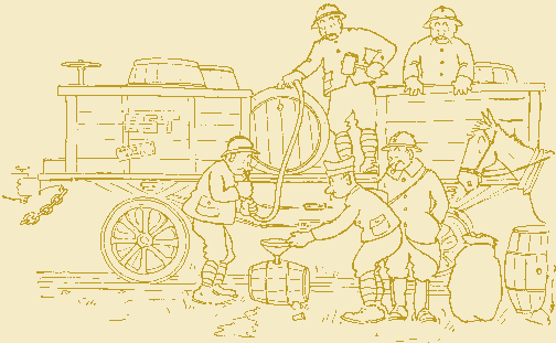 Watch me slip up with my meat-bag tightly clutched, and pass it to the chief chopper, who ducks behind the car and removes the bottle from the bag to his hip pocket, returning to his work, much encouraged, and merely waiting for the officer to pass down the line, before handing out a fifty per cent increase in our weight, carefully excluding all but the finest cuts.