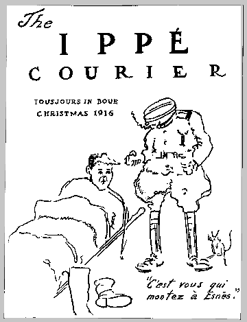 SOME of the sections edited papers at various times, but as their effort was confined to repos periods there was no attempt to do more than issue a copy when occasion offered. The most pretentious of these publications was The Ippécourier brought out by Section Four in 1916, while stationed at Ippécourt. Besides a cover design the paper had twenty pages of articles, verse, drawings, and "advertisements." Less pretentious, but appearing more regularly, was Soixante-Neuf, Section Sixty-Nine's paper. The Big Blat of Section Eight was conspicuous for its cover design, which glorified the section mascot --- a goat. Other sections had simple multi-copied news-sheets, without attempt at drawing or design. Sections Eighteen and Nineteen issued printed section diaries each month. The following article tells of the Section Sixty-Nine publication.