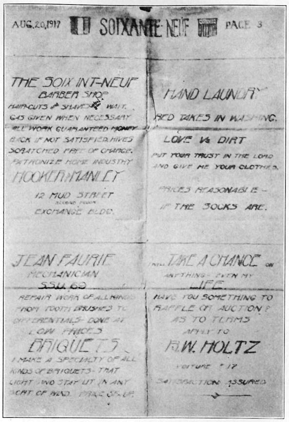 DURING the summer and autumn of 1917, when we were in the region of Verdun, we issued a little paper, the Soixante-Neuf, which was written by us and printed or manifolded at our cantonment.