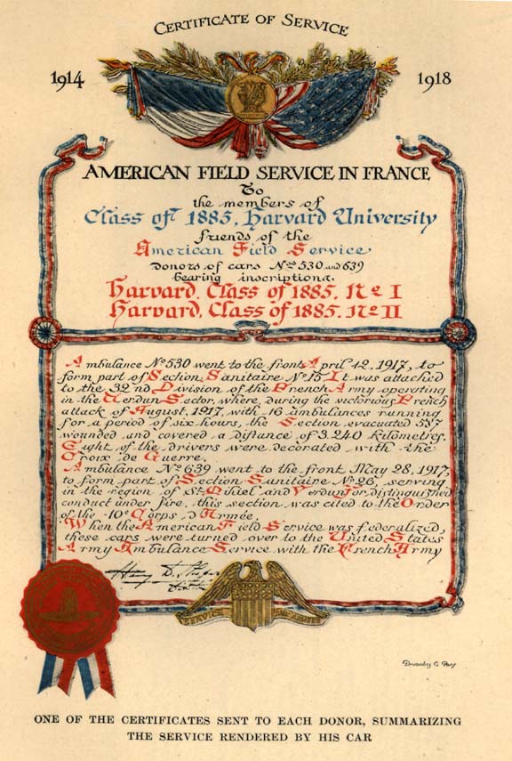 | Presented to the Soldiers of France by Class of Yale, 1899 | Members Class of 1899, Yale University |