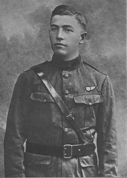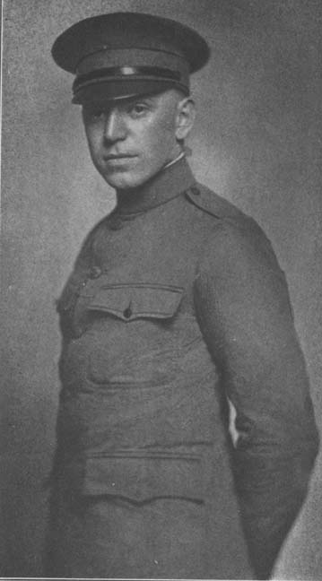 In September, 1917, he returned to America and, finding himself too young to be accepted at any officers' training camp, re-entered Harvard where he became a member of the Harvard Regiment. But his eager heart was overseas and, as soon as he became of age, he enlisted at Camp Upton, graduating early in April as an officer candidate.