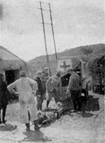 That afternoon, about one o'clock, a shell burst right in the middle of the street at X----- ---killing one soldier and badly wounding four more. I was not far away. I took them to the hospital at Dieulouard, where I found the rest of the Section getting themselves installed in their new quarters.