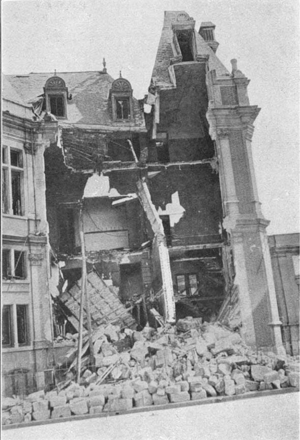 In the city of seven thousand inhabitants she found over twelve thousand, as they had crowded in from the surrounding villages. Those who were in cellars gradually came out and told tales of horror too terrible to relate. Every girl between the ages of fourteen and thirty had been carried away by the Germans, and the younger women left are all about to become mothers of Boche babies. In the cellars many have died, and the mortality among the children has been terrific. Those who died were kept among the living for five days before they were allowed to be buried.
