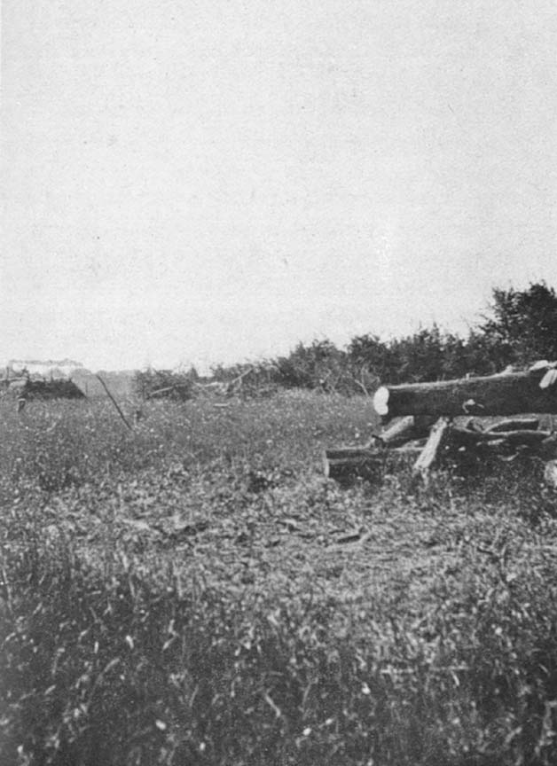 In the woods I went into one wonderful abri, with a beautiful carved lion over the door, a wonderful half of a round mahogany table, big chairs, and big gilt frames minus the glass. I tried to find this same abri the next day when Miss Casparis and I were alone, for I wanted to bring home the table, but we could not locate it.