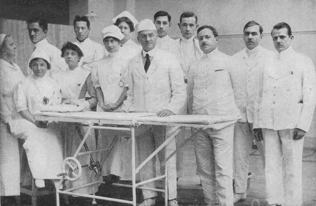Then came the First World War and the service of the Lakeside Unit at the American Ambulance at Neuilly in 1914. The implication of that was enormous. We literally introduced gas-oxygen anesthesia into war surgery and into England and France. I recall the gratification felt when wounded soldiers asked for gas anesthesia. We used it in all painful dressings. Moynihan sent his anesthetist to Miss Hodgins to be trained and she trained several Frenchmen in the use of it.