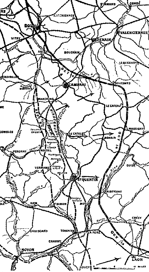 The 3rd (Byng) and 4th (Rawlinson) British Armies have jumped ahead to-day between the Scheldt and Sambre-Oise Canal in the direction of Le Quesnoy and threaten to outflank Valenciennes by cutting its L. of C.