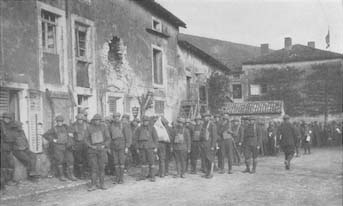 As the Americans advanced, village after village was set free which had been robbed and pillaged by the Germans while under their domination. The Yankee trucks as they returned brought the women and children back from out of the range of shell fire, and they were filled with wonder as they heard the strange language on the tongues of their rescuers. They knew it was not the German, but they had many of them never seen an American before. The Germans had told them that Americans were wild and barbarous people. Yet these men gathered the little hungry children into their arms and shared their rations with them. There were three dirty, hungry little children, all under ten years of age, Yvonne, Louisette and Jeane, whose father was a sailor stationed at Marseilles. Yvonne was only four years of age, and she told the soldiers she had never seen her father. They climbed into the big truck and sat looking with wonder at the kindly men who filled their hands with food and asked them many questions. By and by, they comprehended that these big, smiling, cheerful men were going to take the whole family to their father. What wonder, what joy shone in their eager young eyes!