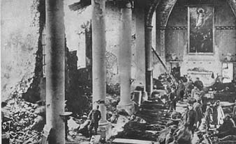 The military officer stood on the steps of this ruined church, and, looking around in perplexity, remarked: