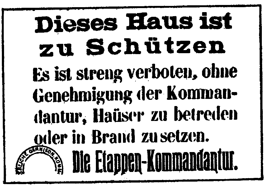 BE PROTECTED It is strictly forbidden to enter houses or set them on fire without the permission of the Kommandantur |