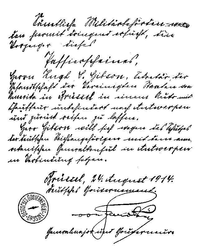 Burgomaster Max requesting the Belgian authorities to allow Mr.