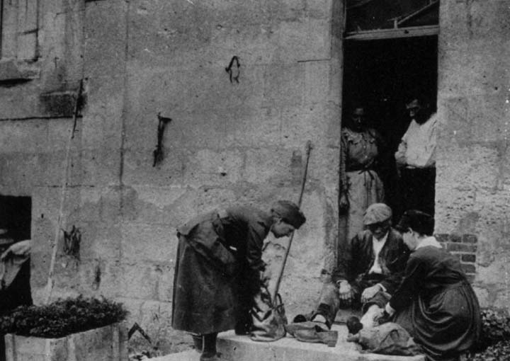 During the typhoid epidemic, which lasted three months, our medical staff became emergency health officers. Double shod with supplementary sabots, they shuffled through barnyard filth from one hovel to another. Streets and courtyards were cleaned, decaying debris dug out of holes and corners, and these disease breeding spots liberally sprinkled with disinfectants. Most of the villages were without drainage, and the members of our organization who served in France were personally familiar with such plumbing fixtures as existed in the war zone---but this is a subject for diplomats.