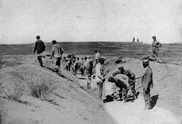 * * * * * * * The irrigation project will take water from the old Araxes River, the upper end of which, historians contend, was one of the borders and supply sources of the Garden of Eden prosperity. By rebuilding old irrigation canals and cutting some new life-giving streams, America will restore scores of abandoned fields. In addition she will reclaim virgin soil that, for want of water, is fast tending toward the same kind of desert which now separates Armenia and the Holy Land, once a populous, productive region. Refugees will do the work for ten cents' worth of grits, American dehydrated corn, a day, and a few American old clothes from time to time.