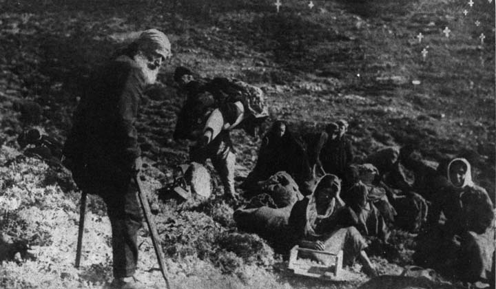 Mr. H. C. Moffett, Dr. Elliott and I stood on an elevation above the cove where the tenders were landing, and watched that tragic procession made up of women, children, the aged, and a small proportion of able-bodied men, struggling through the sand with their bundles on their backs. Many of the old people were exhausted, and had to be helped to the camp of the "unclean," where all the newcomers were obliged to remain until they were deloused and their meager belongings disinfected. Bending beneath enormous loads, the refugees struggled up the hill, and here, as on the railroad pier at Smyrna, unusual personalities occasionally emerged.