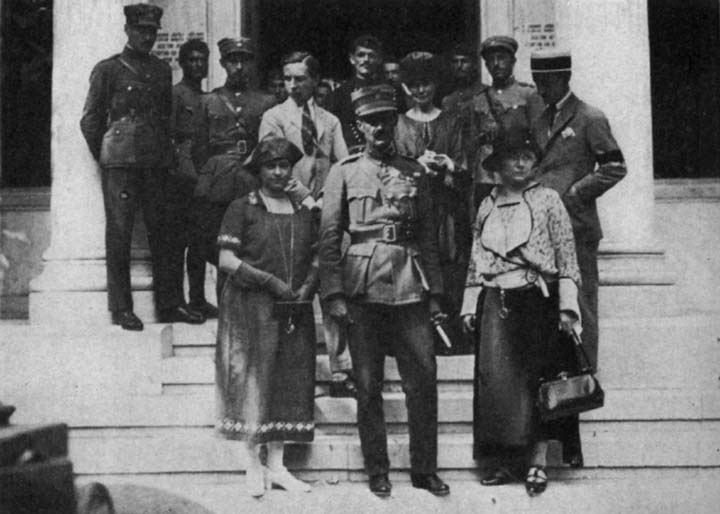 This unprecedented experience induced a new and harrowing sensation. On the horns of this dilemma, I was sitting in the royal anteroom when an American representative came in with Mrs. Gary, to whom he introduced me with the casual but supremely comforting remark that she was from the Mauretania. Her presence seemed providential. I knew the ship wouldn't go without her, besides her pin money was more than enough to support our work on Macronissi Island.