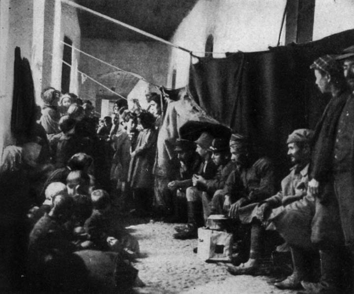As we passed through this barracks and court, crowds of people flocked after us, some speaking English and others trying to make their wants known through interpreters. All the women voiced the same petition. Couldn't the Americans do something to help them get their husbands and sons, who were detained in Turkey? One group of women with a chosen spokesman barred our path. This was the "Soap and Water Committee." They realized the danger of diseases and the importance of cleanliness. The water supply was limited and the wretched, inadequate wooden troughs used as wash-tubs were the greatest cause of trouble among the women of the barracks.