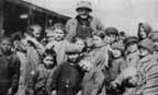 Hundreds followed hundreds through the shifting sand; then came a lovely child, carrying a baby sister, almost more than her strength could support, and tenderly leading her mother, who seemed to have lost her mind. The nondescript numbers streamed from the scows for perhaps another half an hour, when a boy appeared, unwashed for a month, like all the rest, with a fine dog straining at a leash. There was quality in that animal, the dog I mean, and probably in the boy, but he was at a disadvantage. Dogs are good refugees. Their needs are small. Who ever heard of a ragged, unwashed, barefoot dog? No such pathetic animal exists. Clothes may make the man, but pedigree still makes the dog.