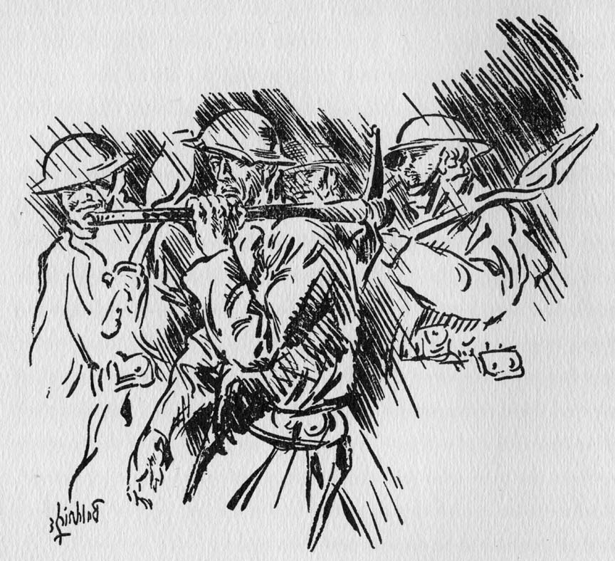 "Naw," came the scornful answer from the next platoon. "They don't have to dig." The whole platoon laughed joyfully over that, and the rest of the march was a noisy and happy parade with a grin on every face.