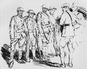 "The French officers," he announced, outlining this morning's trench work, "won't be here for ten minutes. Hold your men here and give them a talk on some useful subject."
