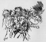 The "Madelon" died down and the men trudged along in silence. The tall Georgian, the platoon joker, got into action---it was a bad morning with a nasty day's floundering in the mud just ahead.