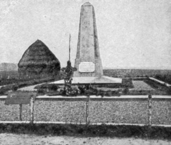 En face du monument, un hangar incendié montre ses fers tordus. D'après certaines relations, les Allemands auraient brûlé dans ce hangar, avant d'évacuer la position le 9 septembre, les cadavres de leurs soldats tués dans les combats d'Étrépilly. Des habitants prétendent même qu'ils y auraient joint les grands blessés non transportables.