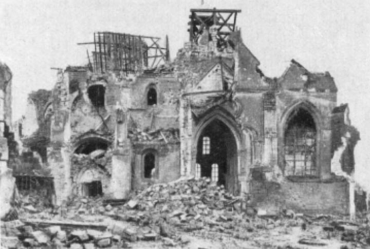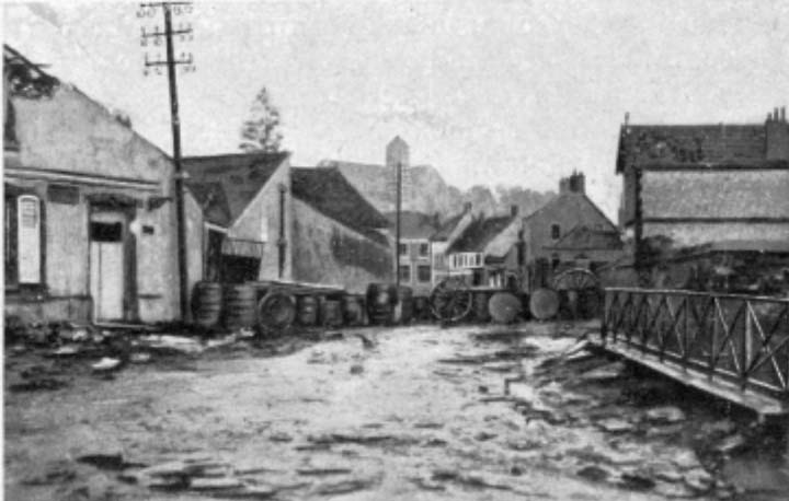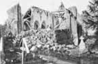 Aussitôt après l'église, on tournera à gauche d'abord, puis à droite vers la distillerie démolie dans la cour de laquelle un obusier allemand a été retrouvé parmi les débris (photo ci-dessus).