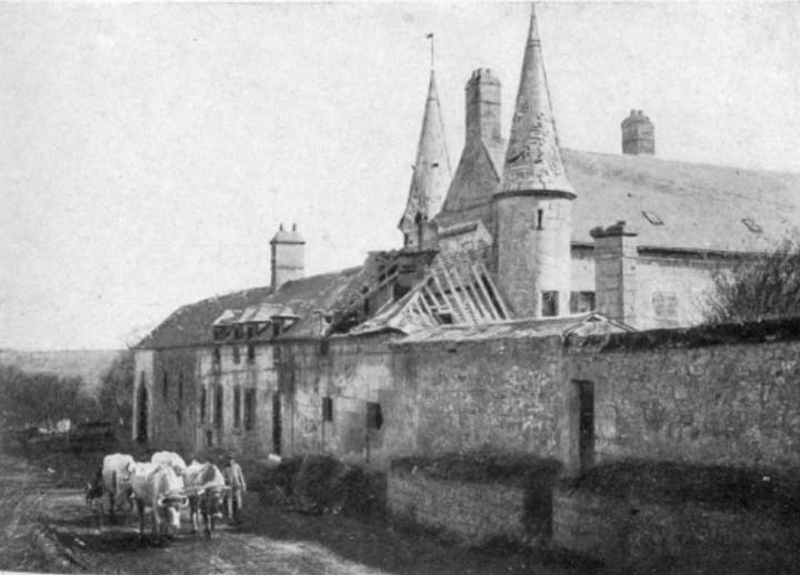 En suivant la route de SAINT-PIERRE-AIGLE à CUVRES, on aperçoit, à gauche el de l'autre côté du rû, la ferme et le château dévastés de VALSERY.