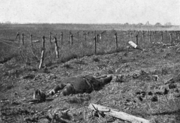 800 mètres avant d'arriver à DOMMIERS, on voit un cimetière britannique d'où a été prise, en avril 1919, la première photo de la p. 91.