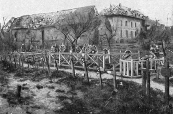 Dans le cimetière, on trouve les tombes des soldats du 164e et du 263e d'infanterie, des tirailleurs, de la légion étrangère, tués le 18 juillet. A côté de l'église, dans la maison détruite du charron, se trouvent des caves très profondes, voûtées en ogives, qui sont d'anciens souterrains où s'abritaient les troupes. Il existe de nombreuses caves de ce genre dans le village.