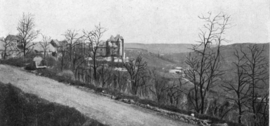 NOTA. --- On peut également monter à l'église plus directement par un raidillon qui prend dans la route au bas de la hauteur, mais ce chemin est très raide et étroit. Il peut cependant être fait en automobile. Si on le prend à l'aller, on redescendra par la grande route et inversement.