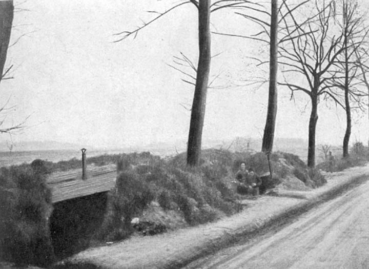 Tout au long de la route, des abris individuels avaient été creusés ; des monceaux de douilles et d'obus avaient été abandonnés par les Allemands dans leur retraite.