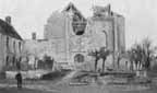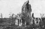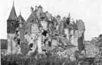 En arrivant au bas de la descente, on trouve à droite, le Château complètement ruiné. Le parc est également saccagé, les arbres sont déchiquetés. L'église se trouve un peu au delà du château (photos ci- contre).