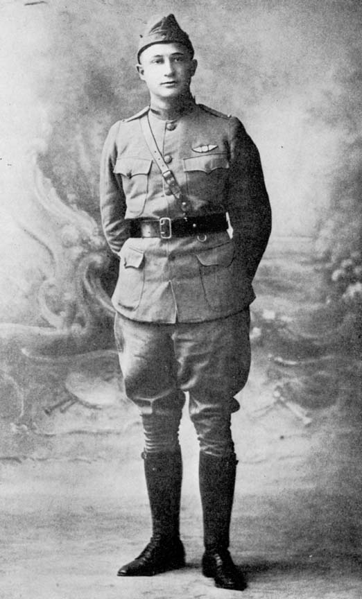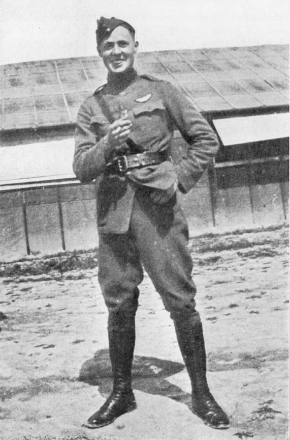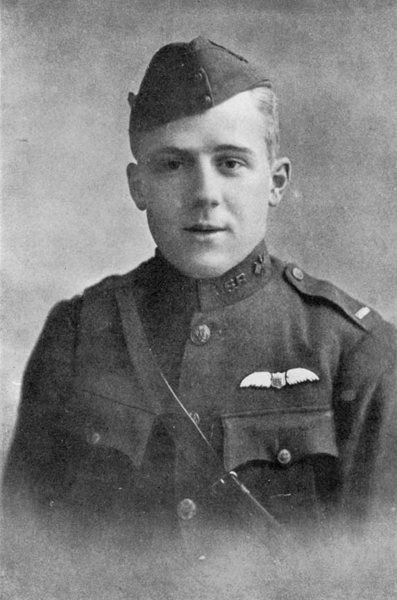 He enlisted on June 16, 1917, at Cambridge, Mass., and entered the Ground School at M.I.T., where, after completing his course, he was selected as one of the honor men to be sent overseas to Foggia, Italy, for further training. There he won the Golden Eagle of the Royal Italian Flying Corps. He was commissioned 1st Lieut. March 2, 1918, and was given his choice of remaining to pilot Caproni planes or being transferred to France. He chose the latter course, and was ordered to Issoudun for advanced training, and then to Tours, where he was stationed for several months. He was then sent to the front attached to the 50th Aero Squadron.
